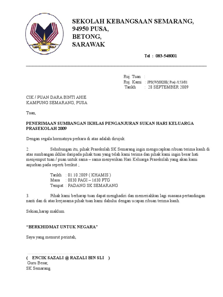 Contoh Surat Rasmi Hari Keluarga Noted G Otosection