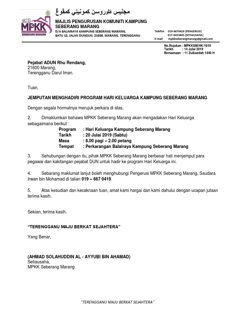 Surat Rasmi Jemputan Hari Keluarga Pdf